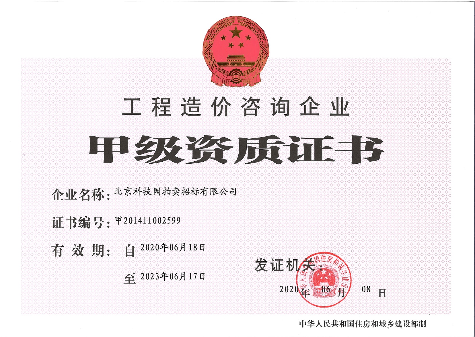 工程造價咨詢企業(yè)甲級資質證書