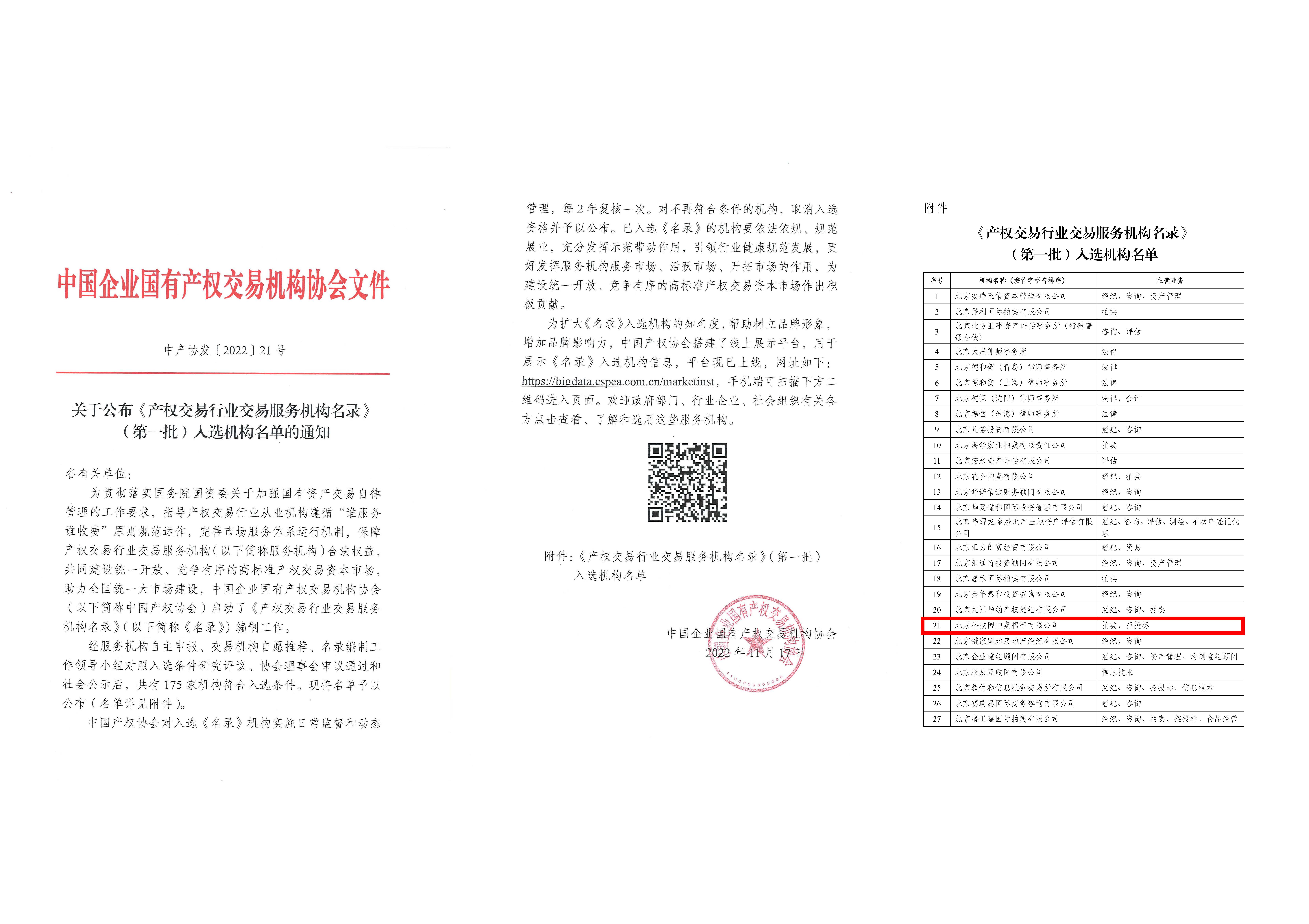 產(chǎn)權(quán)交易行業(yè)交易服務(wù)機(jī)構(gòu)名錄》(第一批)入選機(jī)構(gòu)