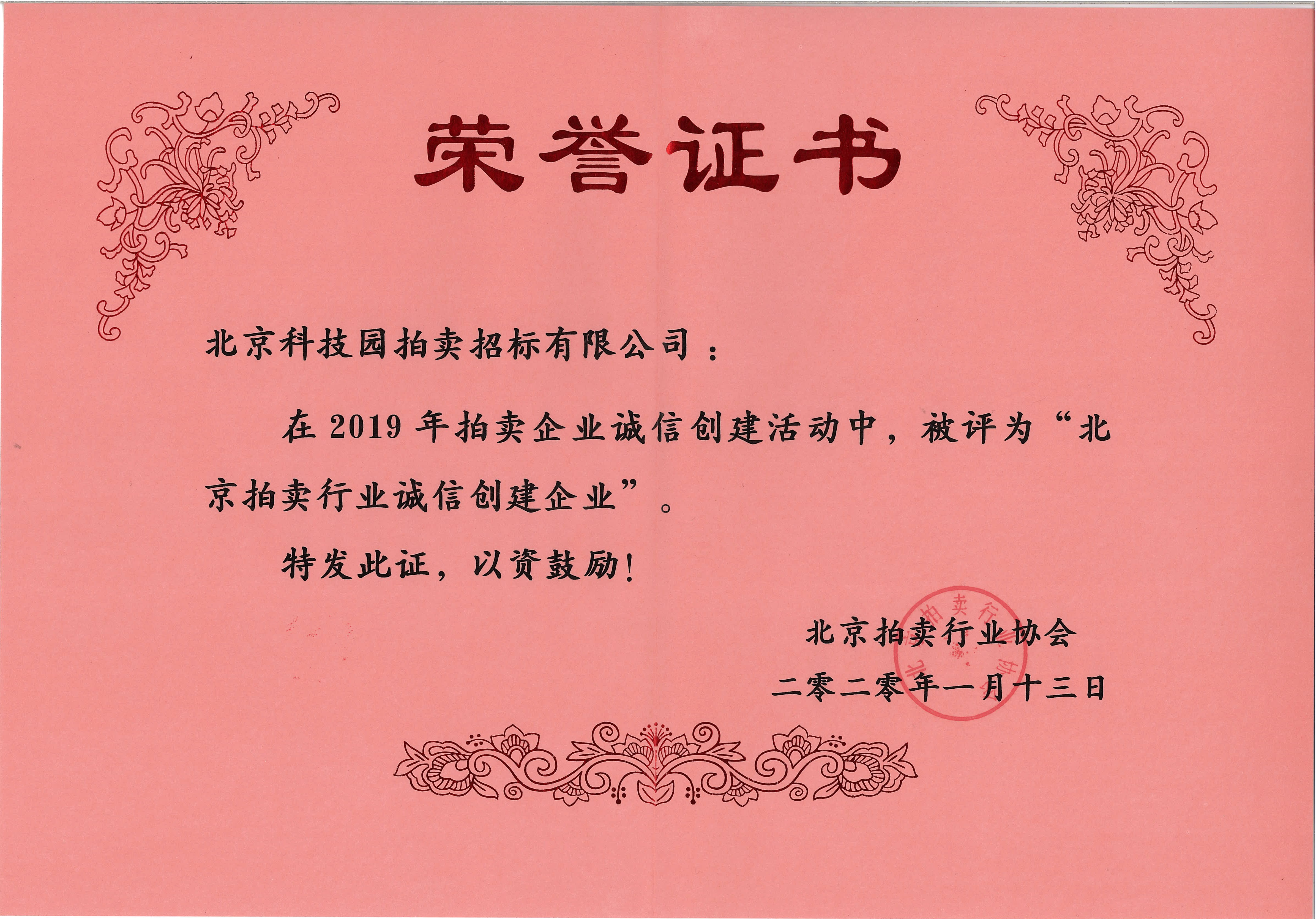 2019北京拍賣行業(yè)誠(chéng)信創(chuàng)建企業(yè)