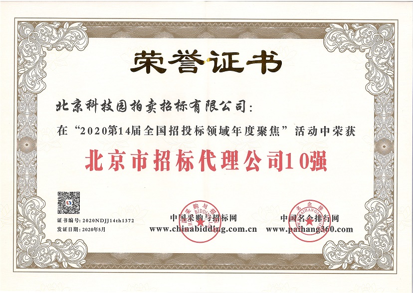 2020第14屆全國招投標(biāo)領(lǐng)域年度聚焦“北京市招標(biāo)代理公司10強