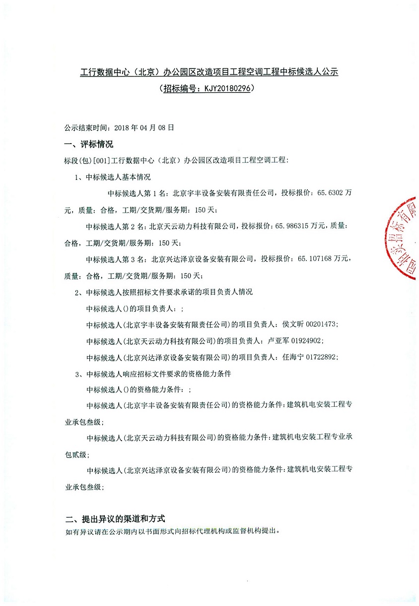 工行數(shù)據(jù)中心(北京)辦公園區(qū)改造項目工程空調(diào)工程中標(biāo)候選人公示