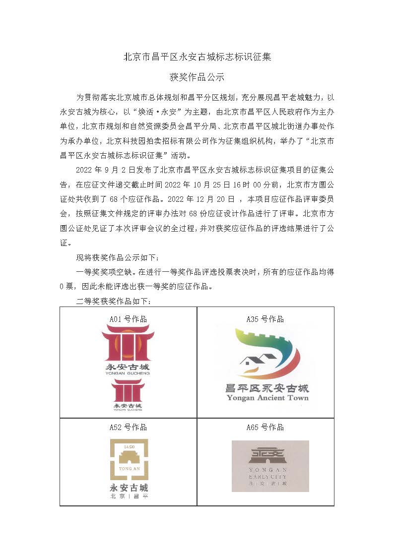 北京市昌平區(qū)永安古城標(biāo)志標(biāo)識征集 獲獎作品公示